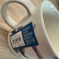 Muumimuki on mielestäni yleisesti muuten erinomaisessa kunnossa, mutta tarra repsottaa hieman (katso kuvat).