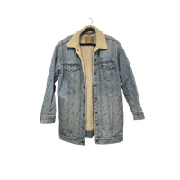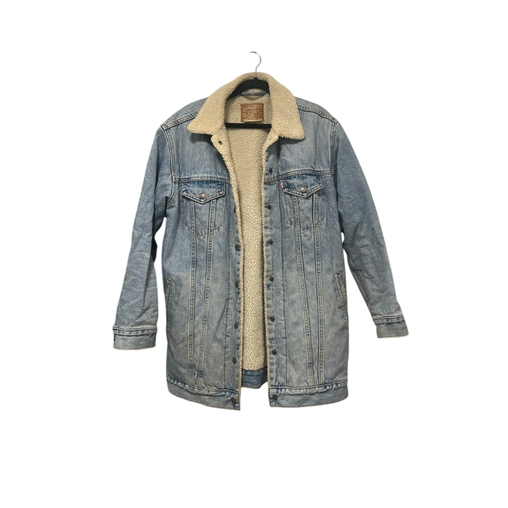 Vaaleansininen vuorellinen farkkutakki, pitkä malli. Jäänyt itsellä vähälle käytölle. Kunto hyvä.