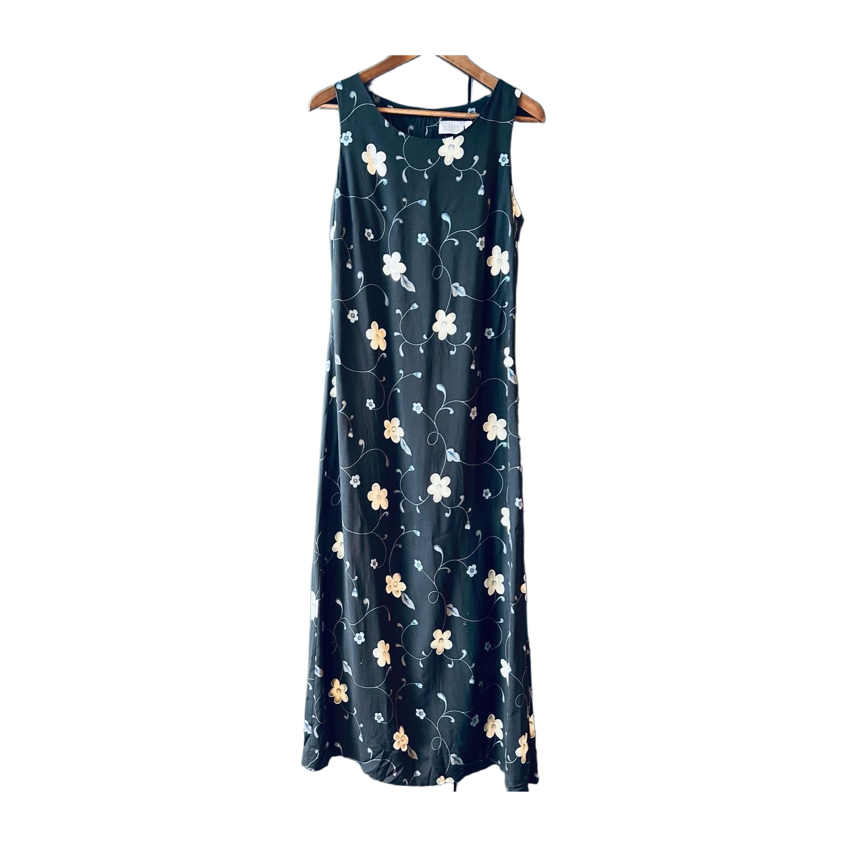 Silkkisen tuntuinen maksimekko, koko 34 mutta väljä malli. Takana halkio. Pituus 140cm ja kai kai mitta 45cm. #maxidress #floral #flowerpower #vintage #y2k #mididress ilmainen toimitus ensimmäiseen tilaukseen koodilla SH7865 #summer #chiffon #party #romantic #flowerdress