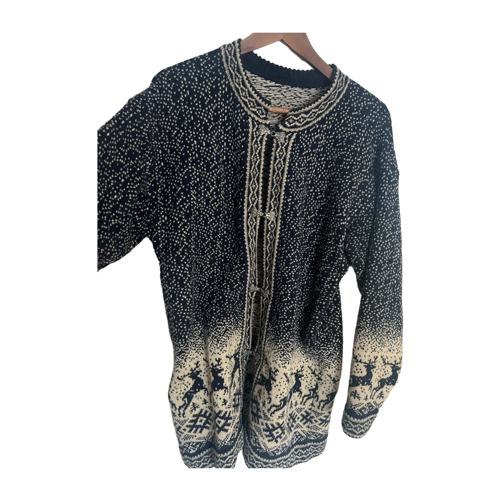 Upea käsintehty villatakki, todella hyvässä kunnossa. Edessä soljet. Pituus 79cm ja kai kai mitta 52cm