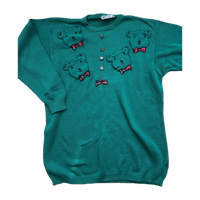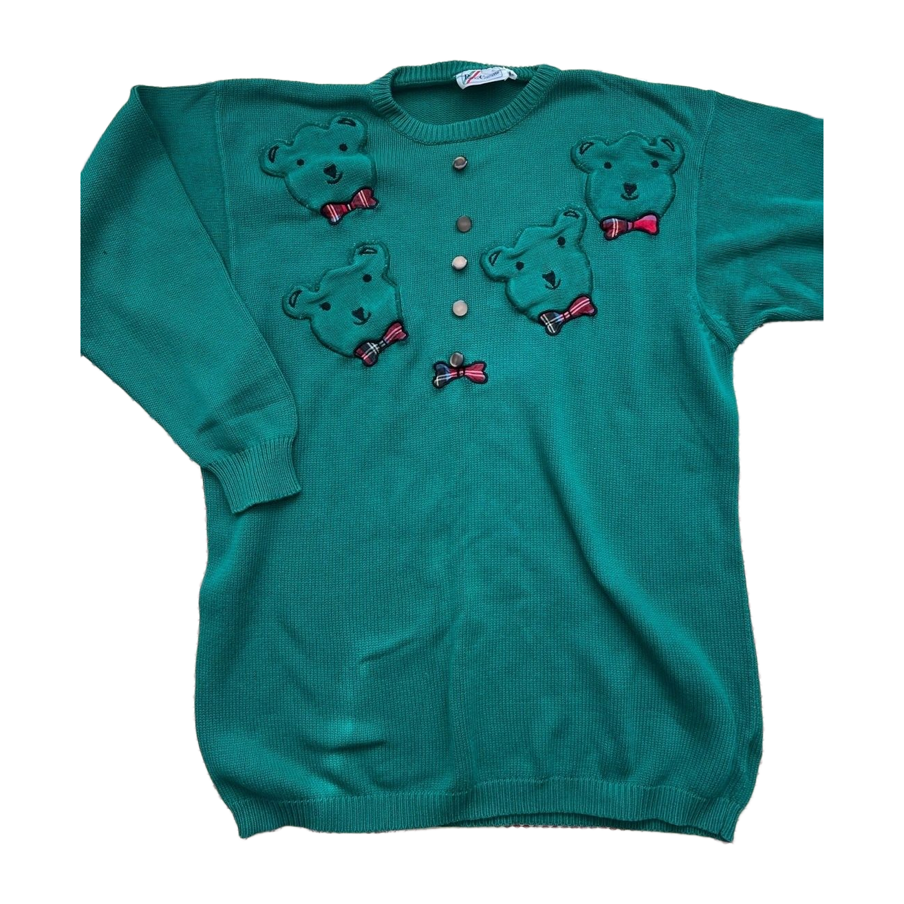 Suloinen nalleneule, puuvillaa. Nallet ovat pieniä taskuja. Koko l, pituus 74cm ja kai kai mitta 54cm. Siistissä kunnossa