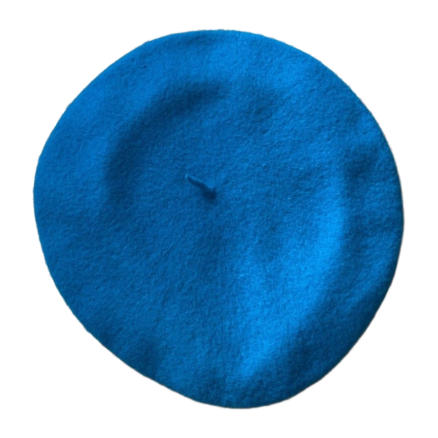 Kauniin sininen villabaskeri, siistissä kunnossa. 100% villaa