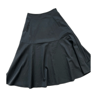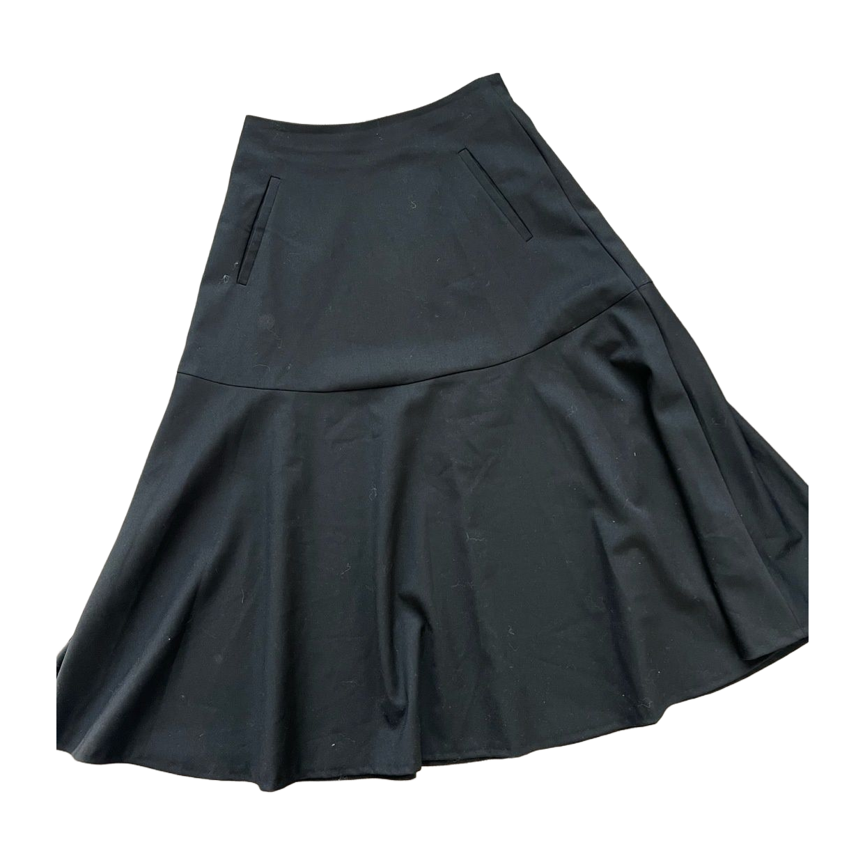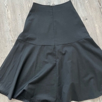 Klassisen mallinen midihame, kellotettu helma. Hyvin laskeutuvaa villasekoitetta. Koko s, pituus 80cm ja vyötärönympärys 68cm. Takana vetoketju
