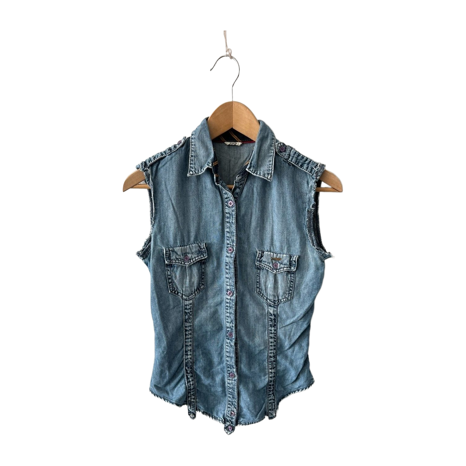 Vintage Guess farkkutoppi, siistissä kunnossa. Koko s, pituus 57cm ja kai kai mitta 46cm. Napit koko matkalla