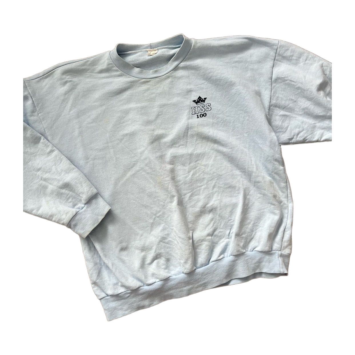 Vaaleansininen HSS college, Helsingin purjehdusseura, koko xl. Pituus ja kai kai mitta noin 60cm. Made in Finland. Haaleaa tahraa, en ole kokeillut tahranpoistoainetta.