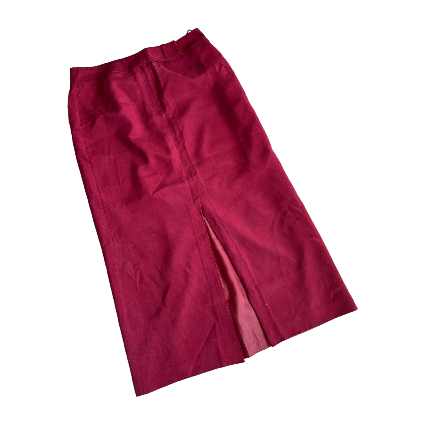 Todella siistikuntoinen silkkihame, koko 14. Pituus 97cm ja vyötärönympärys 88cm. Edessä halkio. Vuoritettu