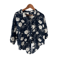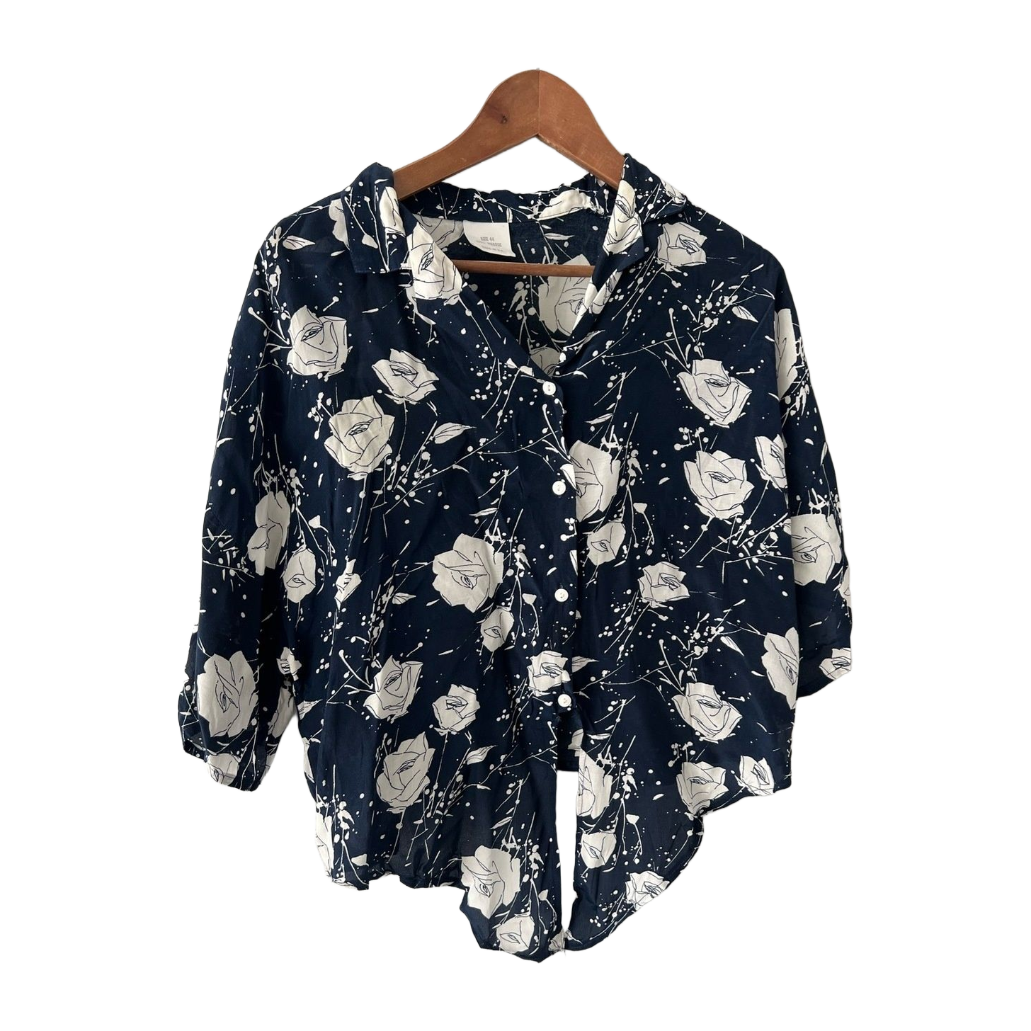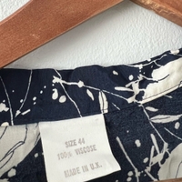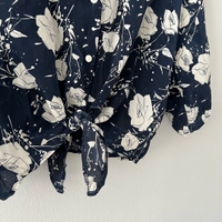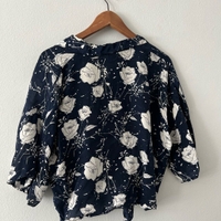 Kaunis sininen kukkapaita, edestä solmittava. Koko 44, pituus 58cm ja kai kai mitta 60cm. Mukavaa viskoosia