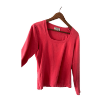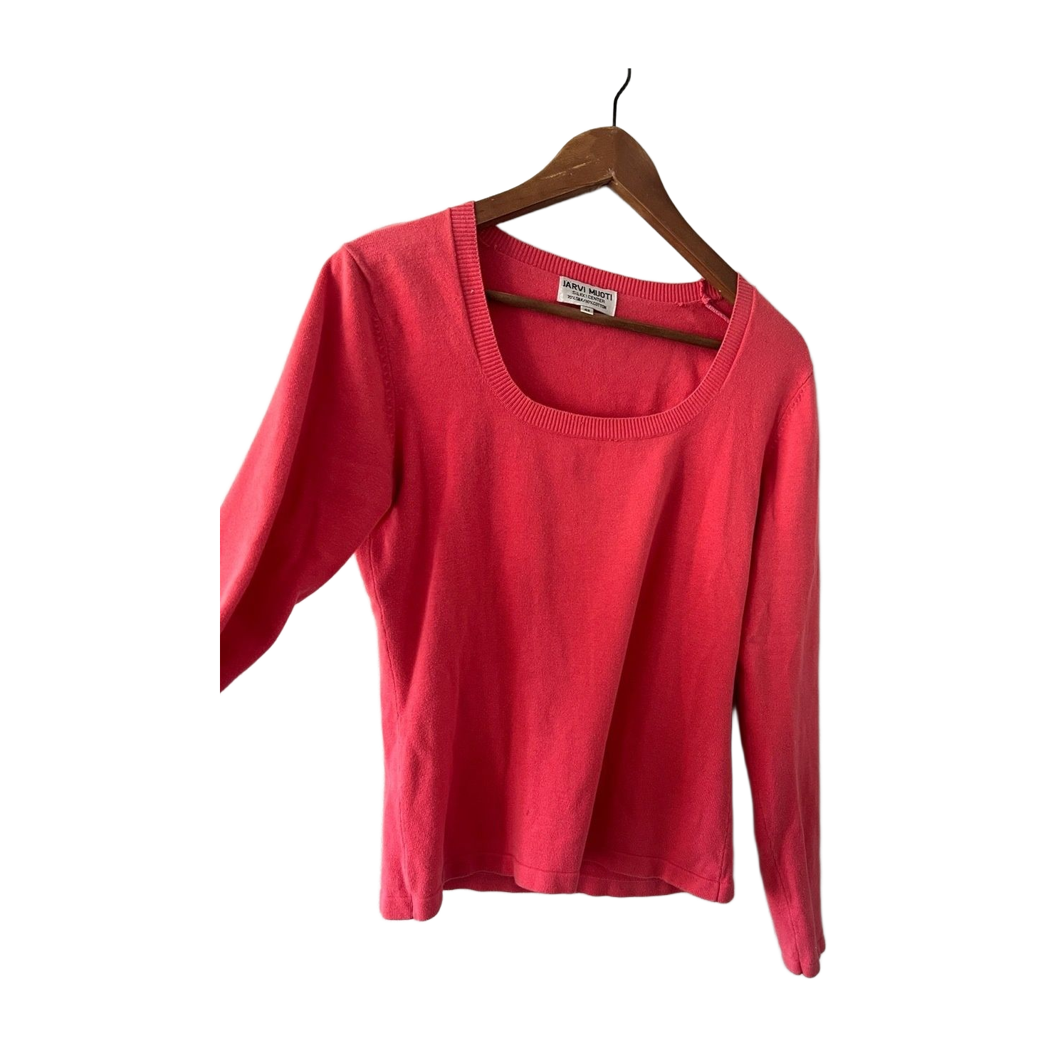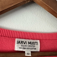 Korallin sävyinen silkkineule, hyvä käytetty kunto. Koko 42, pituus 64cm ja kai kai mitta 49cm. Joustaa