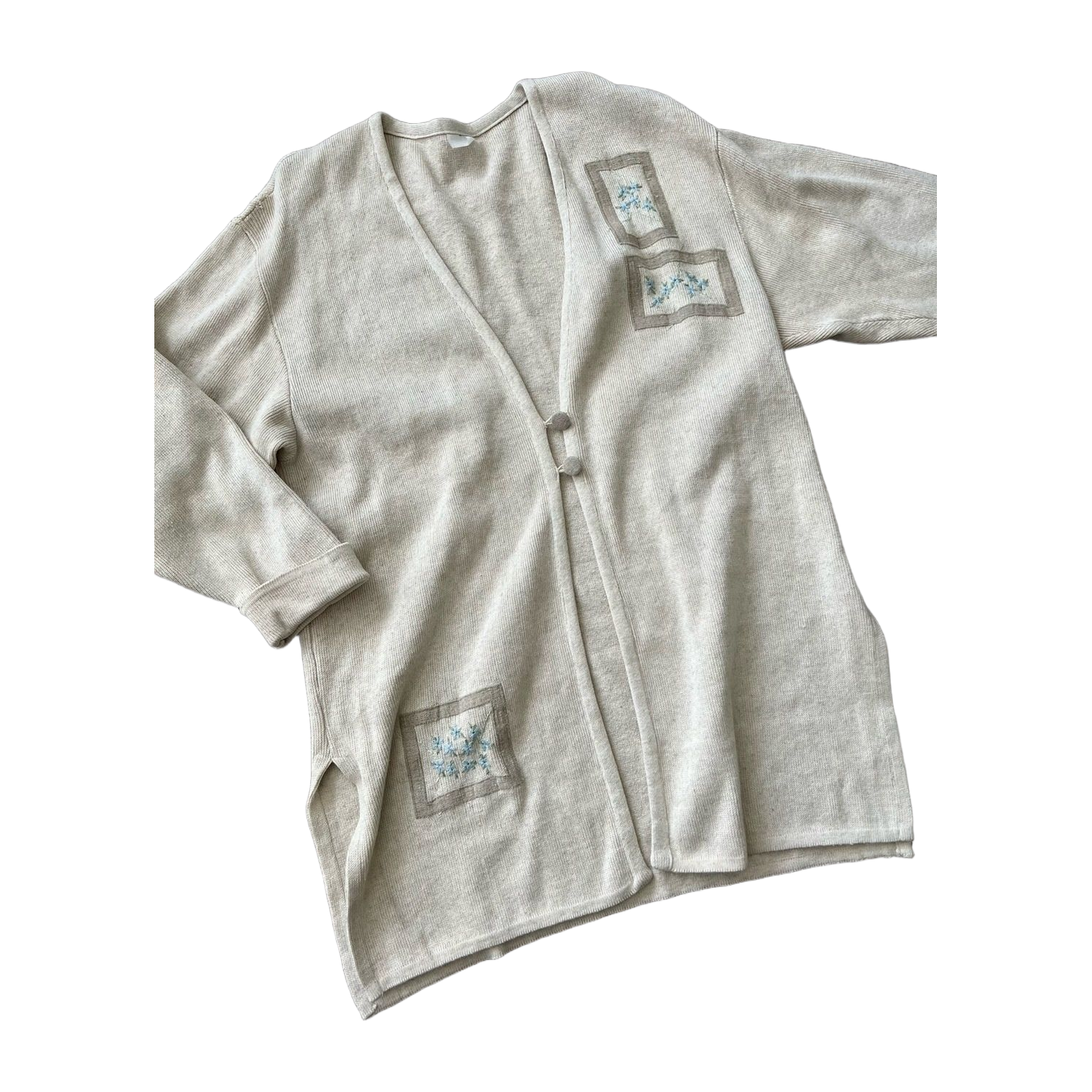 Kaunis Vintage neuletakki, materiaali puuvilla/pellava. Pituus 84cm ja kai kai mitta 57cm. Hyvässä kunnossa. Sopii arviolta koossa s-l.