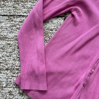 Kaunis vaaleanliila ribbineuletakki, koko 3, sopii arviolta koossa s-m. Puuvillaa. Pituus 57cm ja kai kai mitta venyttämättä 46cm.