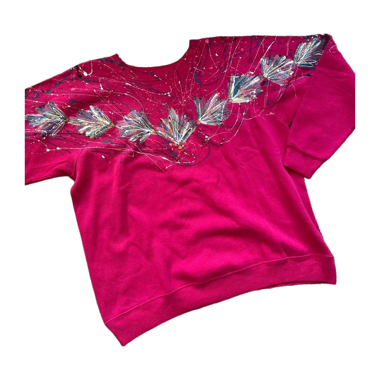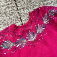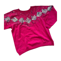 Kimallekoristeinen pinkki Vintage college, koko l. Made in usa. Pituus 63cm ja kai kai mitta 56cm. Oikein siistissä kunnossa