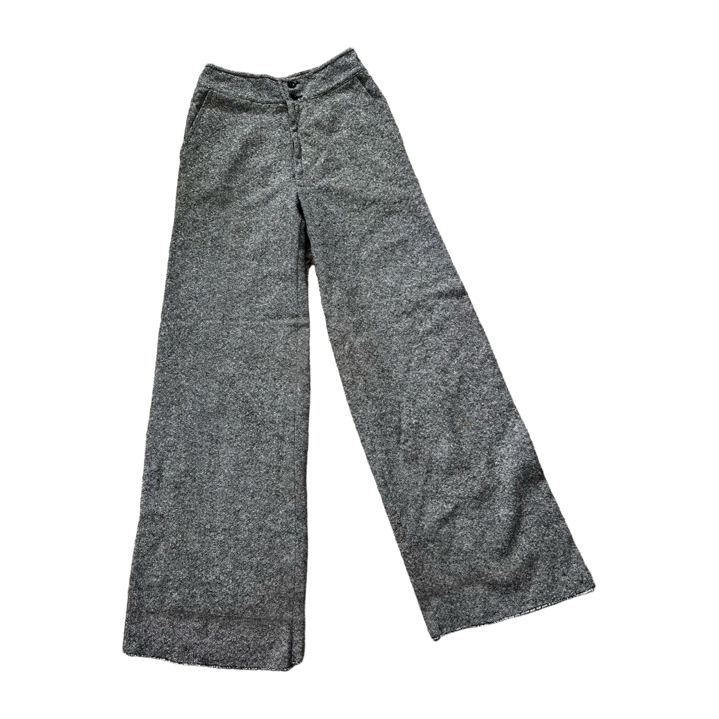 Suomalaiset leveälahkeiset housut, oikein siistissä kunnossa. Kokomerkintä 44, mutta vastaa mittojen puolesta enemmän kokoa s. Lahkeen sisämitta 78cn ja vyötärönympärys noin 65cm.