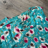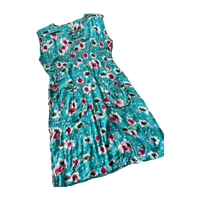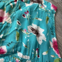 Kaunis pitkä kukkamekko, koko m. Edessä taskut. Pituus 112cm ja kai kai mitta 58cm. Siistissä kunnossa.
