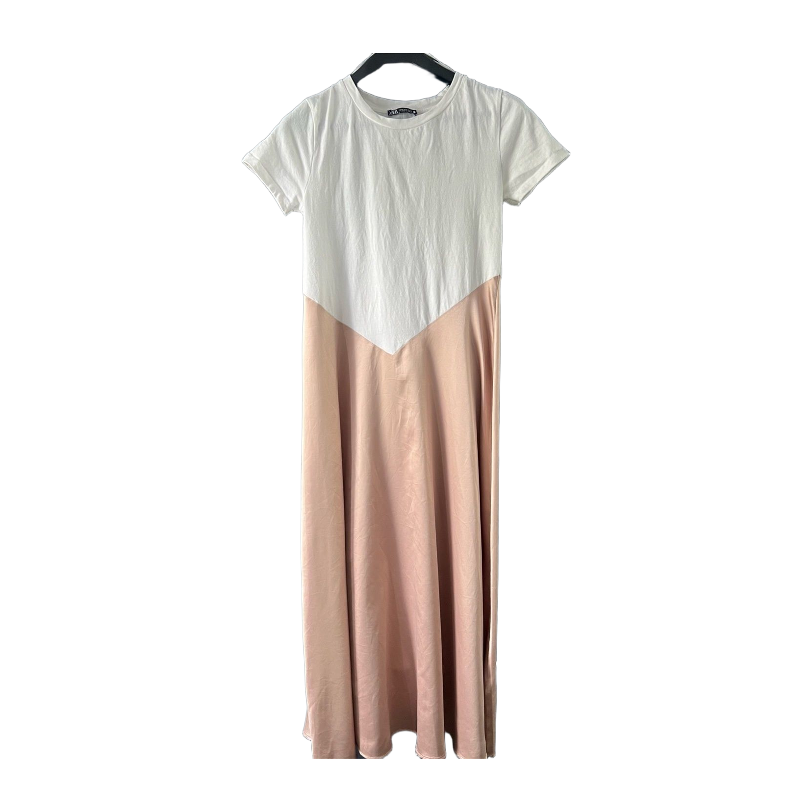Zara midimekko, koko s. Yläosa puuvillaa ja helma satiinia. Pituus 126cm ja kai kai mitta venyttämättä 44cm. Siistissä kunnossa