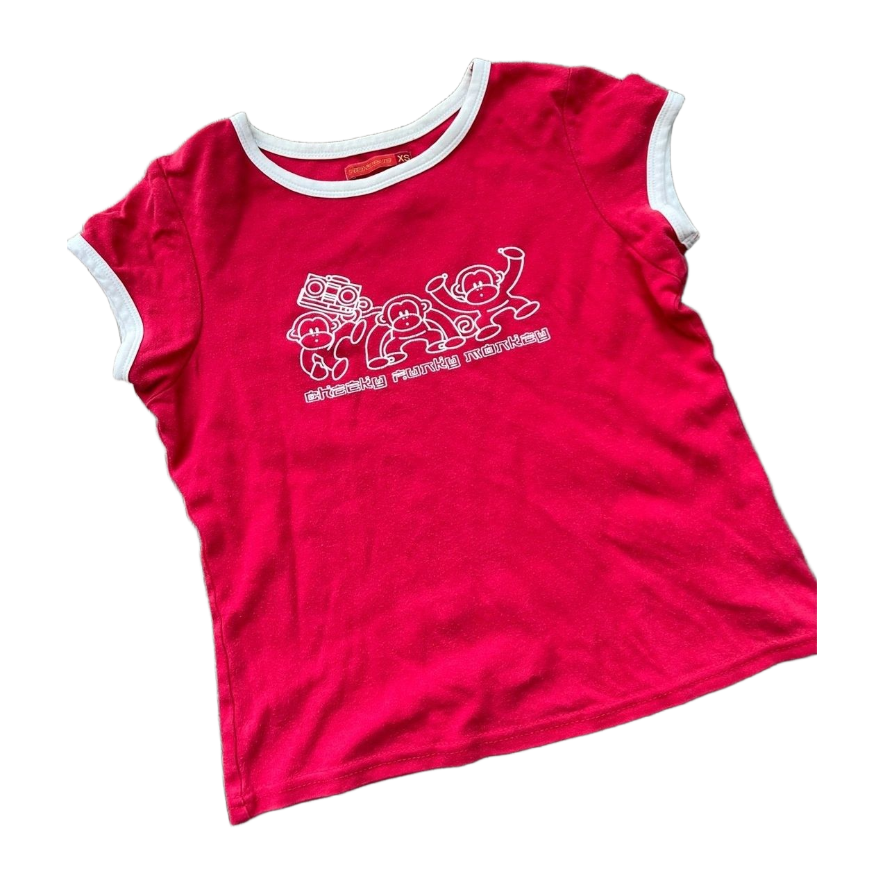 Siistikuntoinen vintage lyhyt Fishbone t-paita, koko xs. Pituus 47cm ja kai kai mitta venyttämättä 42cm.
