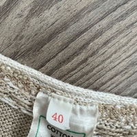Suomessa valmistettu suloinen neuletoppi, puuvillasekoitetta. Koko 40, pituus 56cm ja kai kai mitta venyttämättä 38cm. Siistissä kunnossa