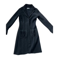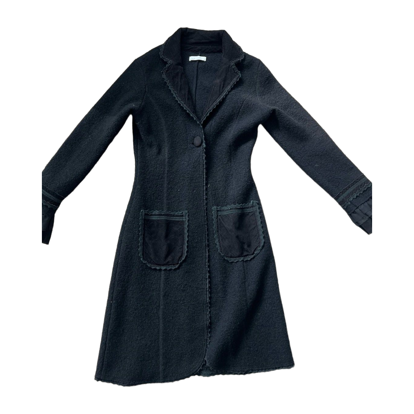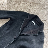 Kauniisti koristeltu villatakki, paksua keitettyä villaa. Koko m, pituus 104cm ja kai kai mitta 50cm. Sopii hyvin ulkokäyttöön syystakkina.