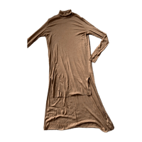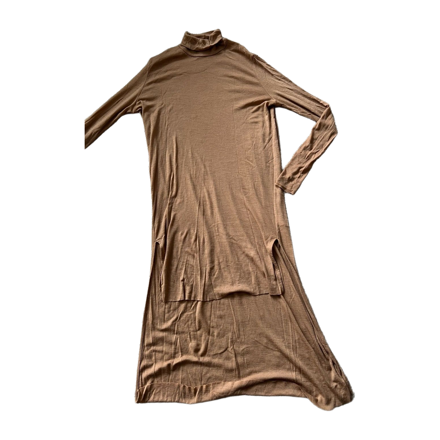 Pehmeä joustava neulemekko, 100% villaa. Koko m, pituus 85cm/118cm ja kai kai mitta venyttämättä 50cm.