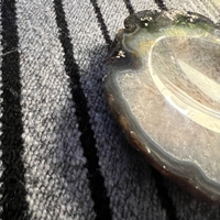 Upea akaattikivestä tehty tuhkakuppi, käytetty korulautasena. Moitteeton kunto. 80 luvulla Brasiliasta ostettu. Leveys noin 15cm.