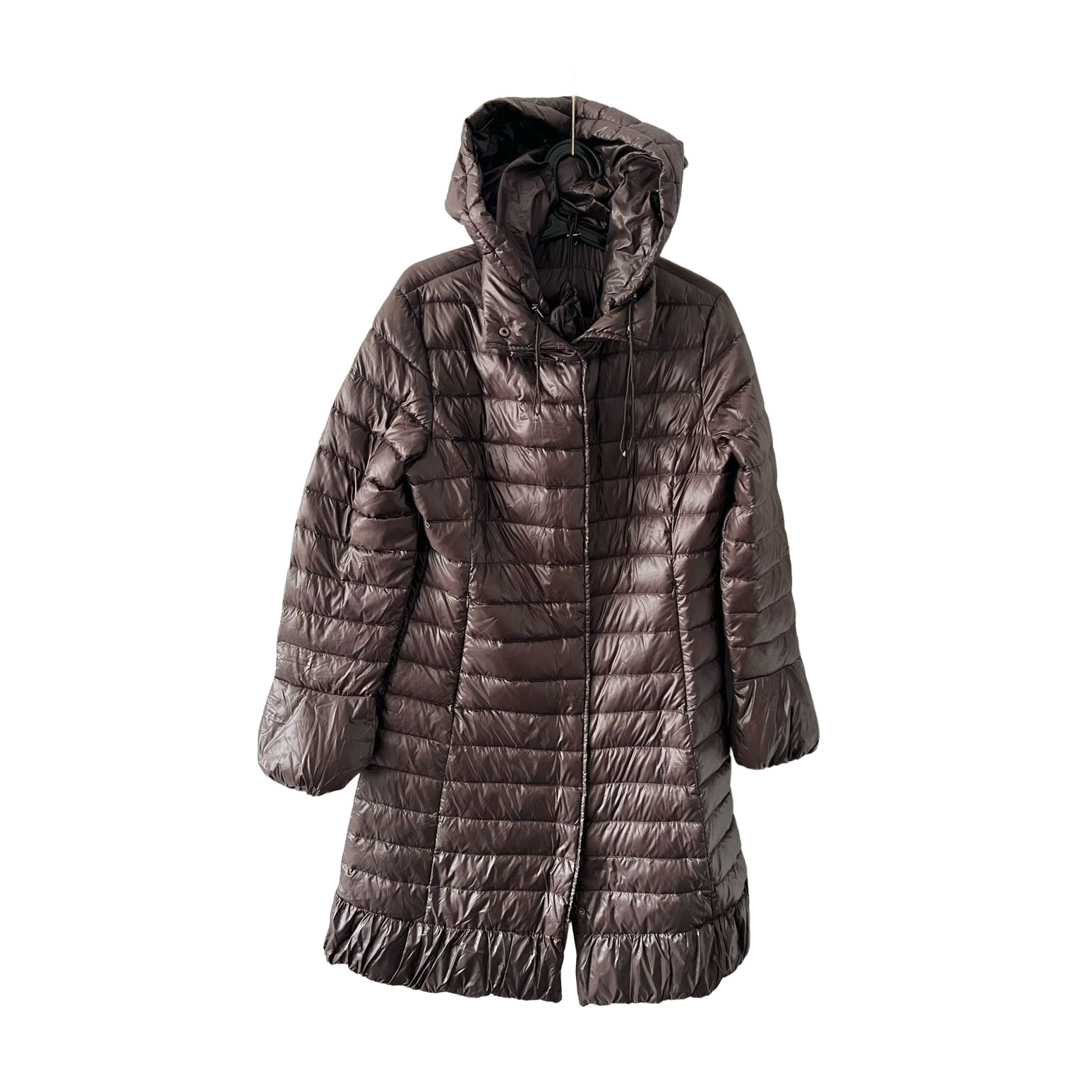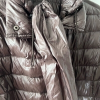 Siistikuntoinen pitkä untuvatakki, koko m. Mukana pussi jossa saa takin helposti pakattua mukaan. Pituus 96cm ja kai kai mitta 52cm.
