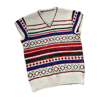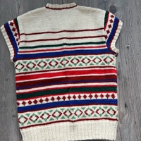 Kaunis käsintehty villaliivi, siistissä kunnossa. Pituus 54cm ja kai kai mitta noin 43cm. Sopii arviolta koossa xs-s.