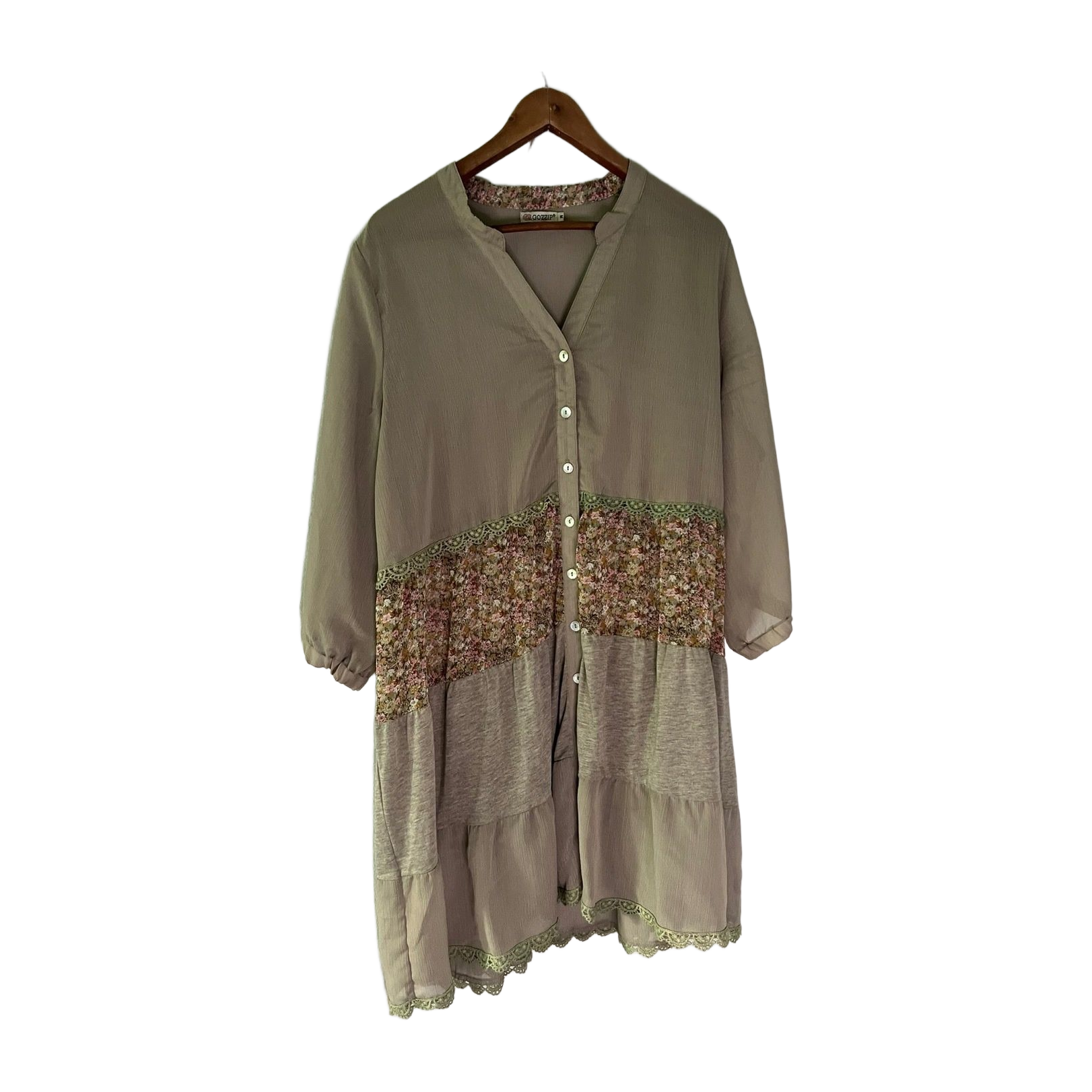 Kaunis kukkakuvoinen lyhyt mekko/tunika. Koko m, tarkoittaa tällä merkillä kokoa 46. Todella siistissä kunnossa. Pituus 96cm ja kai kai mitta 64cm.