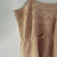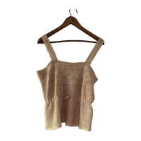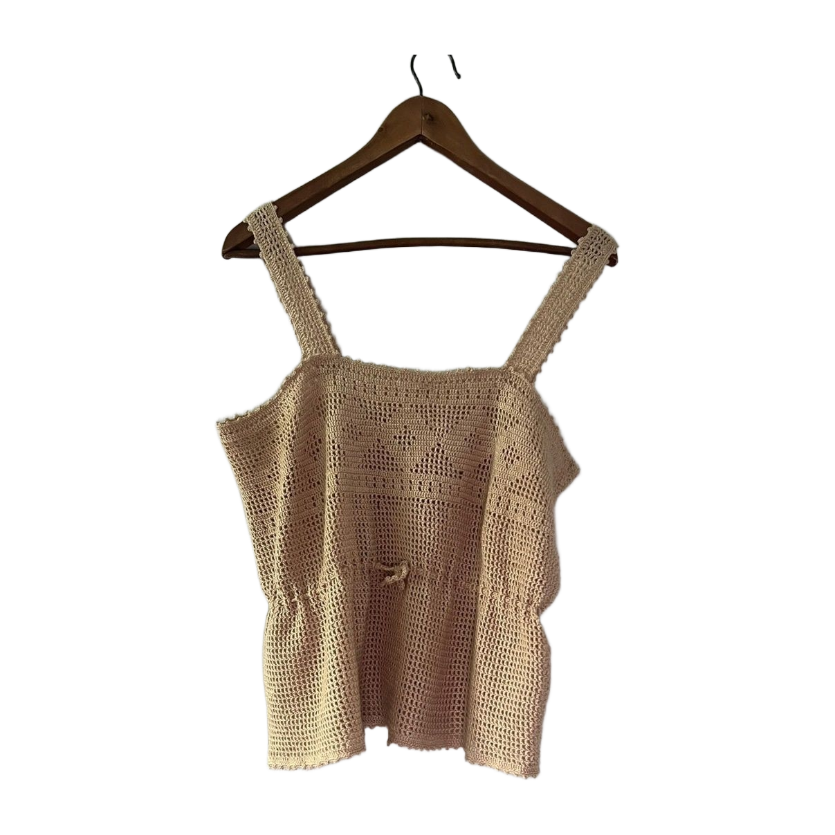 Suloinen käsintehty toppi, todella siistissä kunnossa. Saa kiristettyä vyötäröltä. Vastaa arviolta kokoa m, pituus 60cm ja kai kai mitta 51cm