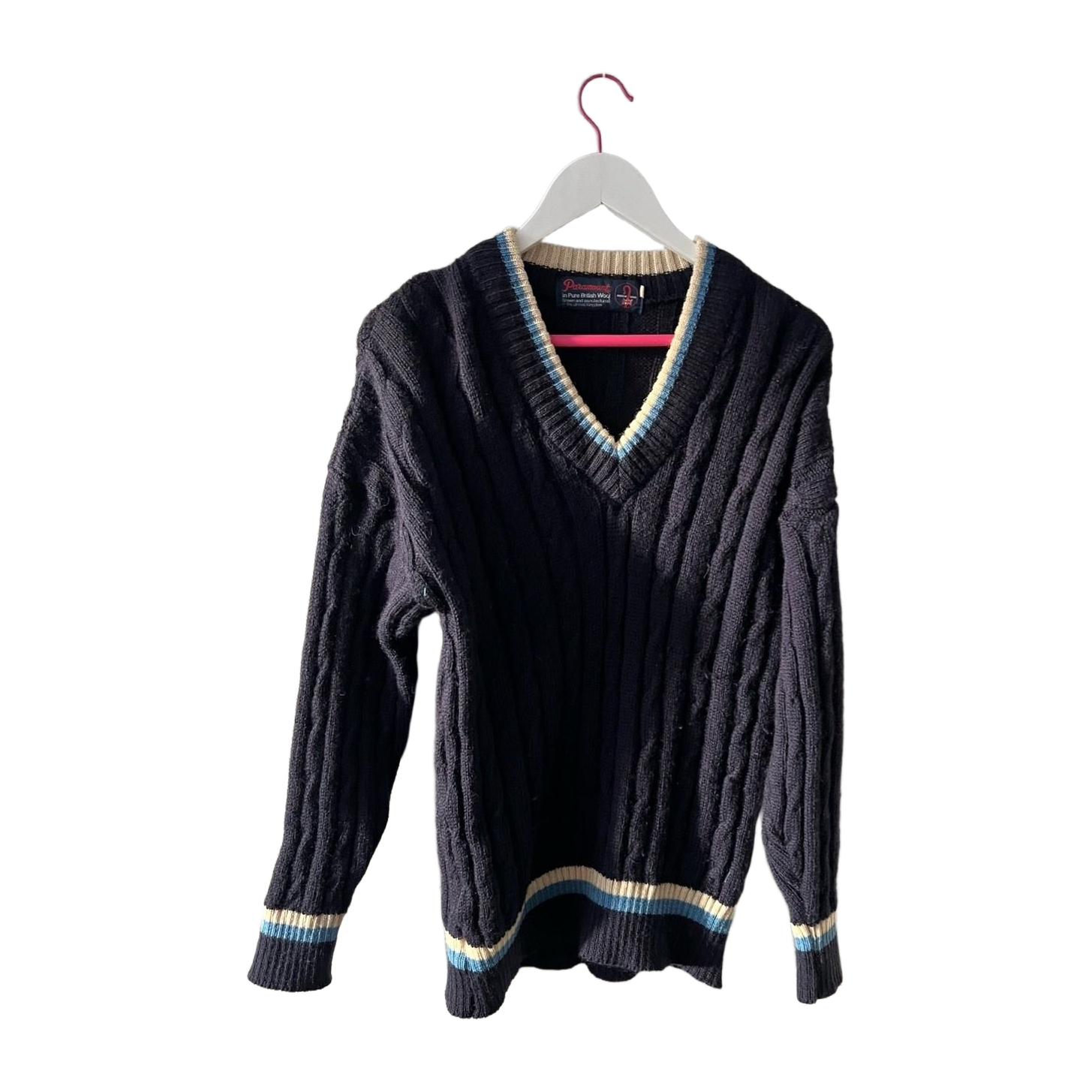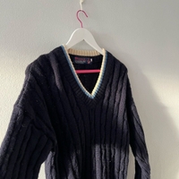 Klassinen Englanissa valmistettu villapaita, 100% villaa. Pehmoinen, ei kutita. Hyvässä kunnossa. Koko l, pituus 77cm ja kai kai mitta 60cm. Hyvä unisex malli