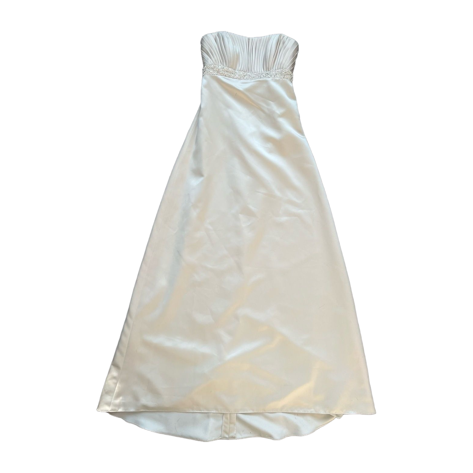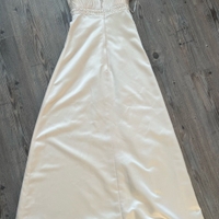 Kaunis klassinen Vintage hää- /juhlamekko, kermanvärinen. Kokomerkintä 40, vastaa ehdottomasti pienempää, lähempänä s kokoa. Pituus 139cm, kai kai mitta noin 40cm ja vyötärönympärys noin 72cm. Hyvä käytetty kunto. Pieni laahus