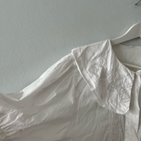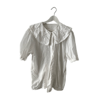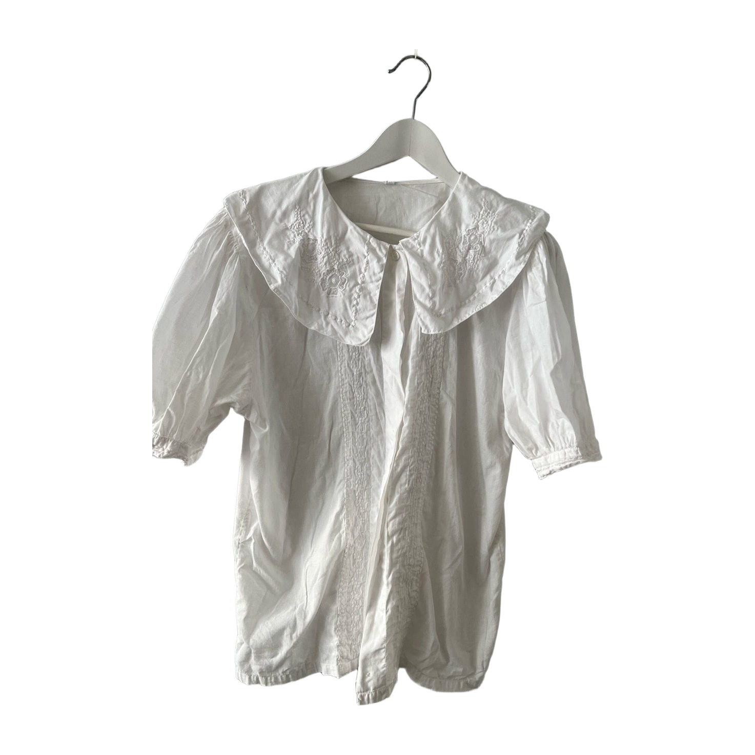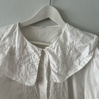 Kaunis puuvillainen paita, väljät hihat. Koristeellinen kaulus. Koko m, pituus 70cm ja kai kai mitta 54cm.