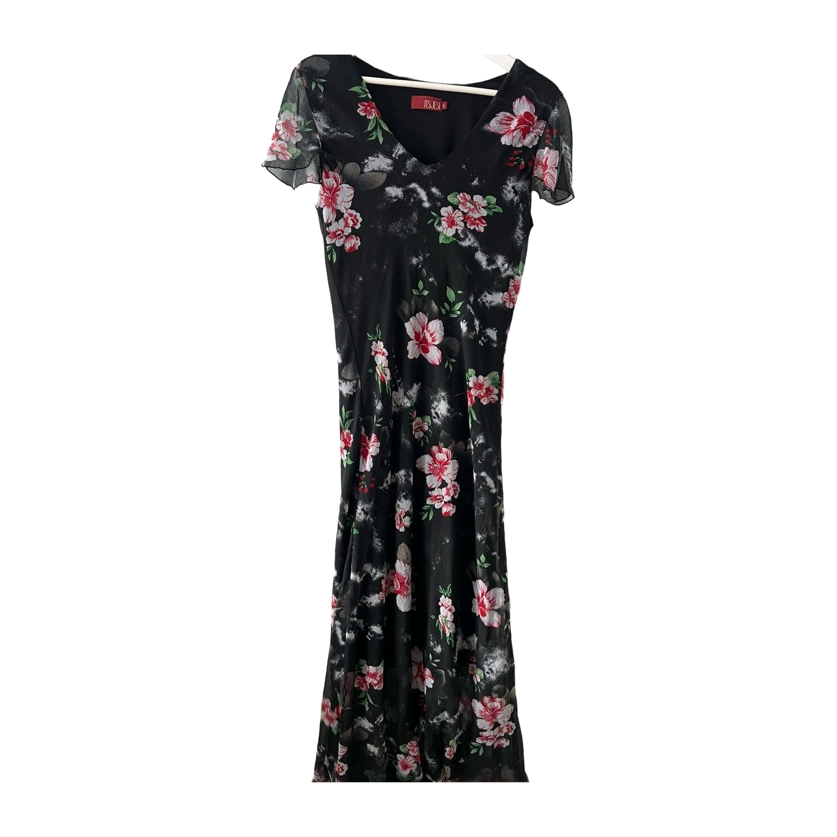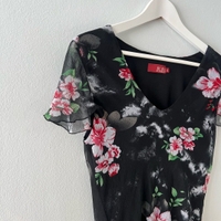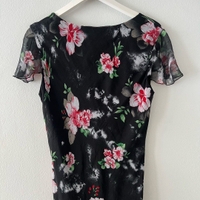 Kaunis maximittainen kukkamekko, päällikangas joustavaa meshkangasta. Kokomerkintä 46 mutta vastaa enemmän kokoa m/l, pituus 152cm ja kai kai mitta 52cm. Oikein siistissä kunnossa