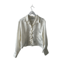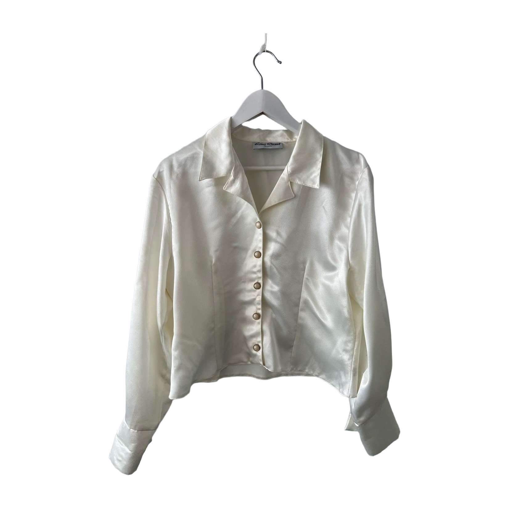 Kaunis valkoinen Vintage paitapusero, satiinia. Koko xl, pituus ja kai kai mitta noin 55cm