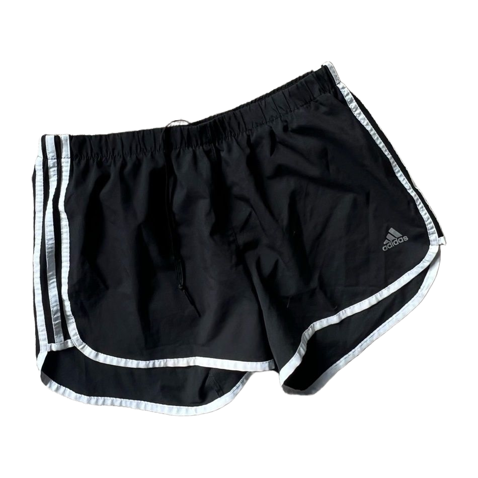 Adidas juoksushortsit, koko m. Oikein siistissä kunnosssa. Koko pituus noin 33cm ja vyötärönympärys noin 80cm, joustaa ja saa nyörillä kiristettyä