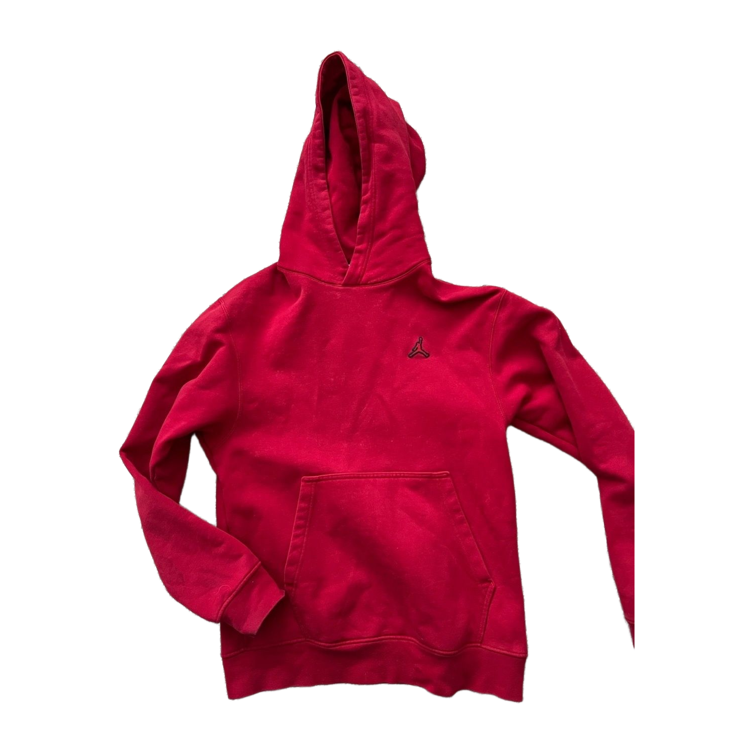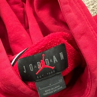 Punainen Air Jordan huppari, hyvä käytetty kunto, haalea tahra johon en ole testannut tarhranpoistoainetta. Koko s, pituus 66cm ja kai kai mitta 50cm.