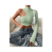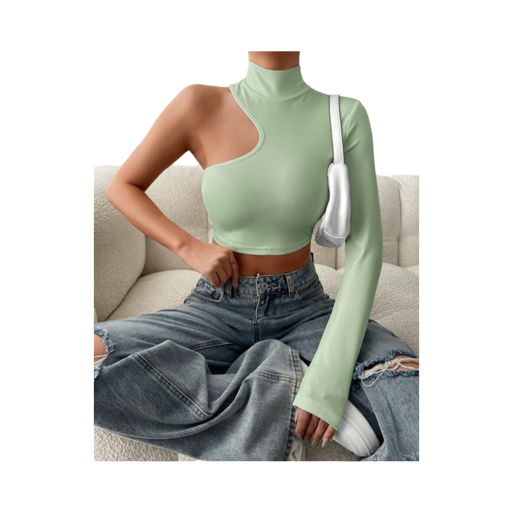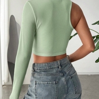 Yksiolkaiminen, pitkähihainen ribbimallinen crop-top.