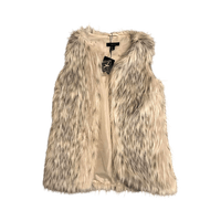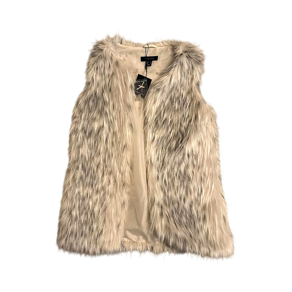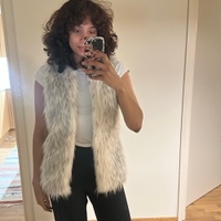Käyttämätön valko-harmaa tekoturkisliivi