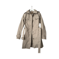 Klassinen beige trenssi takki, vyöllä ja napituksella.