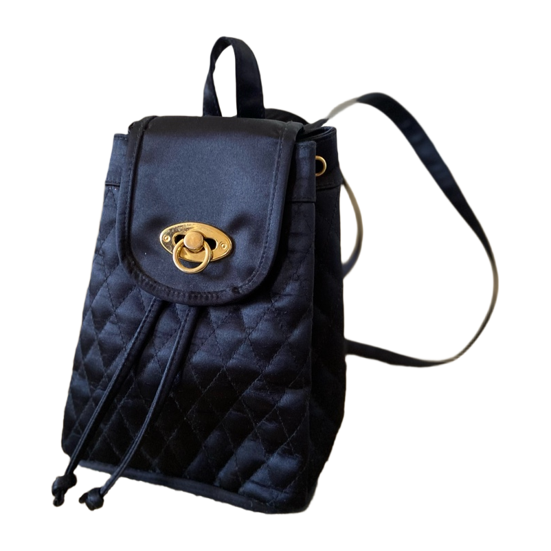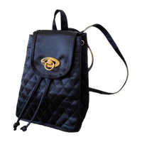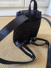 Stylish black quilted backpack purse, fits a water bottle, phone, wallet, keys etc. Bought second hand. Adjustable straps.