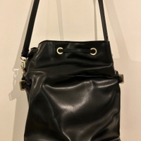 Musta Zara Basicin laukku. Sopivan kokoinen. Itsellä ei enää käyttöä laukulle. Laukussa näkyy hieman kulumaa, reunat käytön myötä kuluneet. Sisällä muutama erikoinen tasku. Mitat 30x30cm
