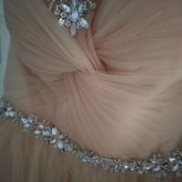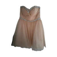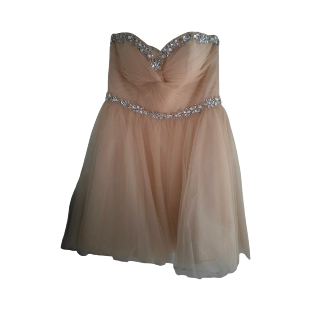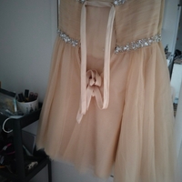 Kuin uusi kerran käytetty mekko ollut M-L kokoisella naisella ja 161cm pituisella takana nyöri jolla saa kiristettyä mekko vielä.