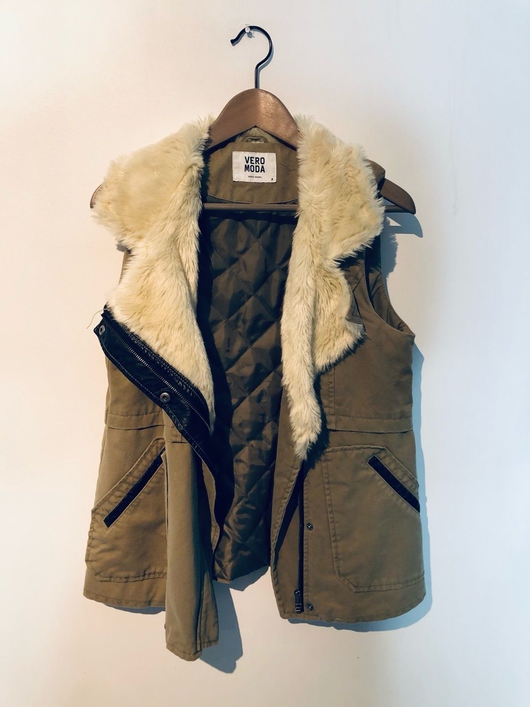 Armeijan vihreä liivi karvasomisteella.