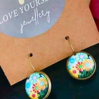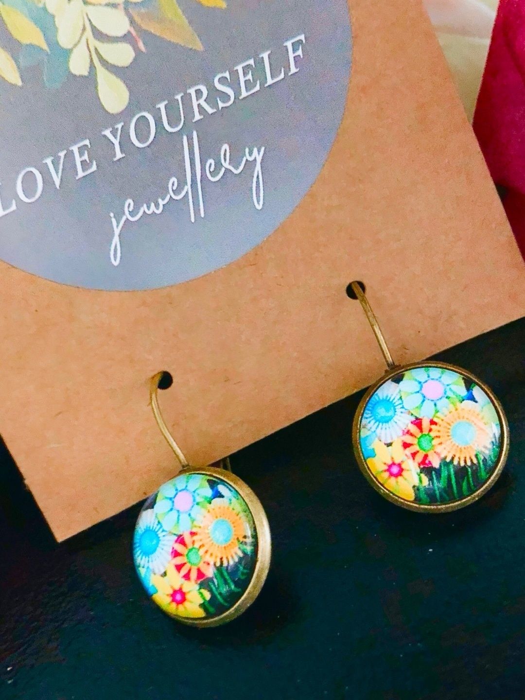 Pienet boho-kukkakorvakorut. 70-luvun hengessä. Koko 2 cm (koukun kanssa)