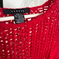 Punainen, väljästi neulottu neule, villasekoitetta. Koko normaali S. Ihan uusi ja virheetön.