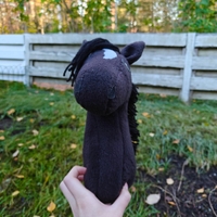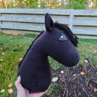 Fleece kankaasta käsin tehty pieni alle A4 kokoinen keppari. Harja mustaa nalle lankaa.