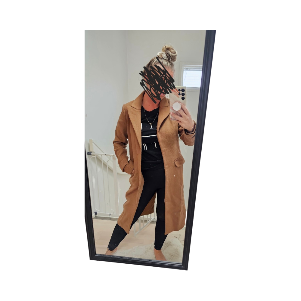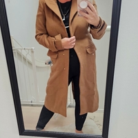 Villakangastakki kultaisilla napeilla, ryhdikäs malli. Olkatoppaukset. Takissa villaa 50%. Hieman nukkaa, nukkakoneella lähtee varmasti pois. Säilytyksestä hieman rypyssä.