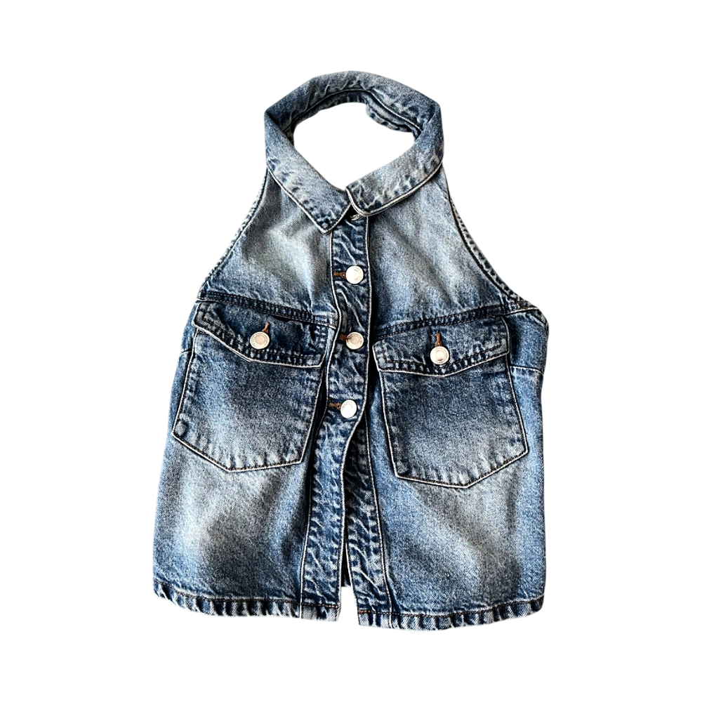 Kerran käytetty farkkuliivi-toppi