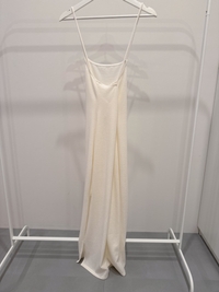 Pitkä, kermanvärinen mekko. Pesty, mutta käyttämätön.
