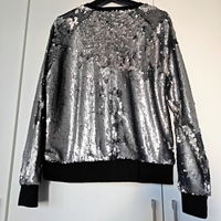 Silver sequin sweatshirt with black cuffs and hem, size M