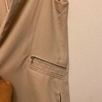 Pitkä, hihaton bleiseriliivi, vaaleabeige sävy.