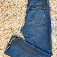Malli: mid-rise slouchy straight. Keskikorkea vyötärö. Löysä istuvuus. Leveähköt suorat lahkeet. Vetoketju suljenta.